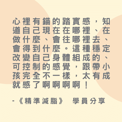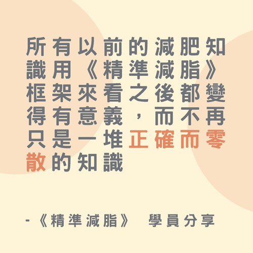 開課至今已滿 7 年、學員人數 750+、每年皆根據最新研究&經驗、重新規劃的《精準減脂》課程,2026 年版本根據學員回饋,重新回到較符合多數能逐步上手的 12 週長度+加碼一年份所有課程內容影片無限複習,方便所有人以自己的方式學習!