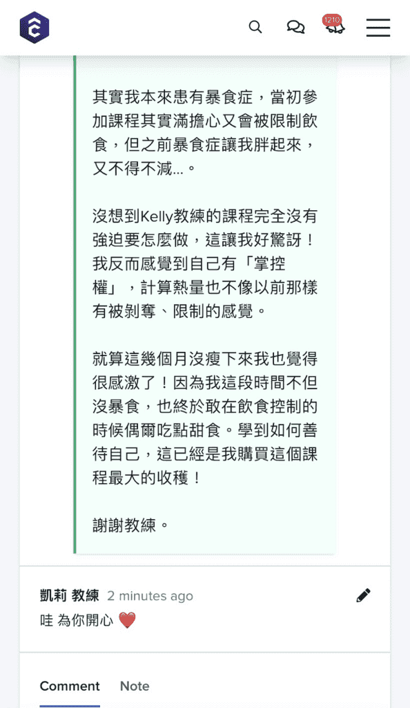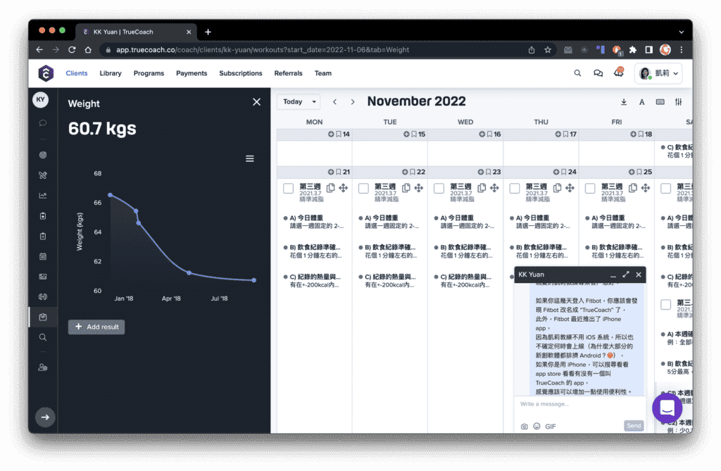 - 你會有專屬個人12週線上追蹤紀錄平台(只有你跟教練看得到),完整記錄你的課程進度(文字、照片、影片)、與教練的問答、身體數據量測
