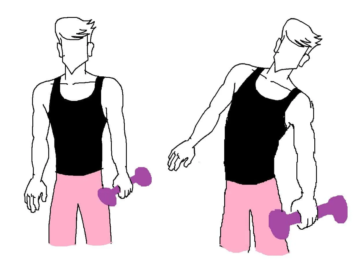但重點來了。由圖可以看出,這兩塊肌肉主要負責的是旋轉你的身體這個動作。敝人常常看到很多人拿著很重的槓片或是啞鈴做身體側屈的動作試圖鍛鍊這兩塊肌肉(再下面那張圖),但基本上,由於你的脊椎左右支撐力比前後支撐力弱,因此這個動作不但有危險性,且絕大部分都練到了你肚子深層的另外兩塊肌肉,而不是外面這兩塊腹側肌。既然腹部側面主要負責旋轉你的身體,要鍛鍊他們最有用的方法就是側式捲腹。也就是右手肘碰左膝、左手肘碰右膝的捲腹。改天有空本人再來詳細介紹它。