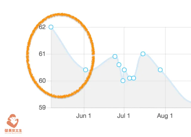 圖表為一個我的學生的真實範例,在一開始連續增加食量的