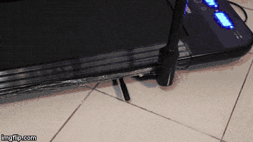 跑步機的移動方式。下面有滾輪,可以輕易拿起與放下。接上插頭打開開關,就可以直接使用: