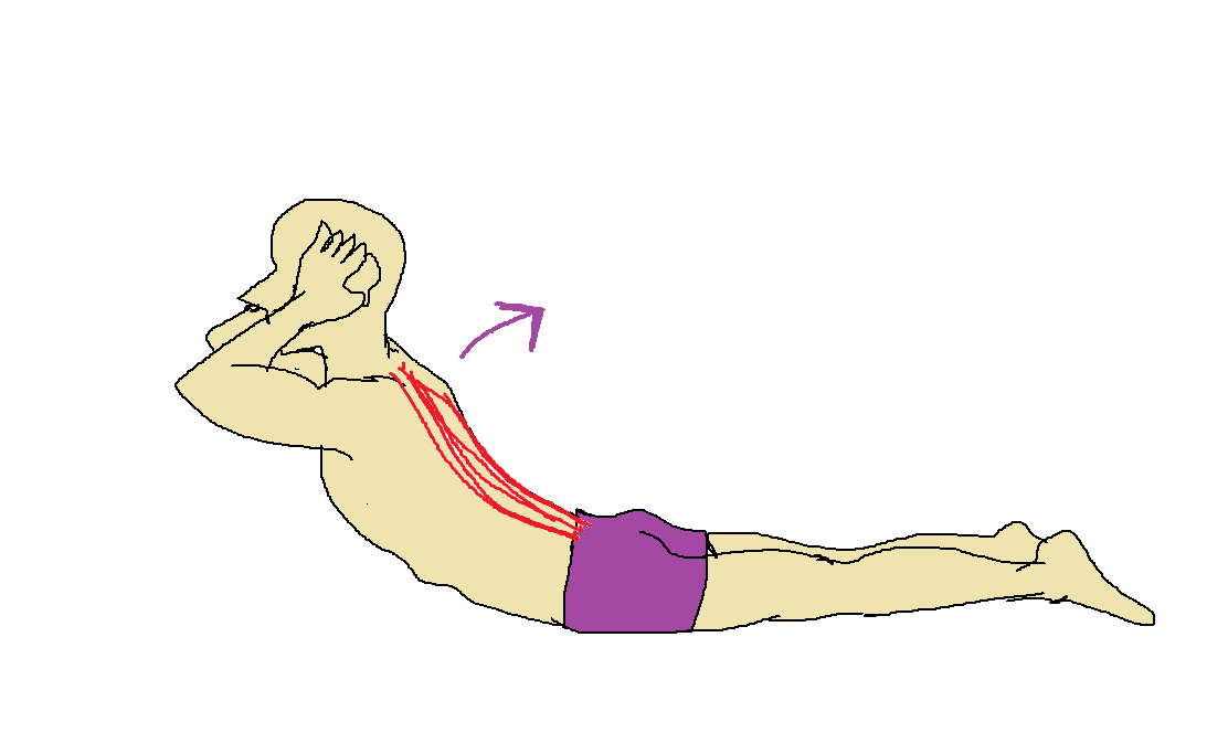 - 紅色:我想這個動作各位應該很熟悉。請人幫你壓住雙腳腳踝,雙手平放在身體兩側或是放在耳朵旁邊(放著就好,請不要用力扳著你的頭,不然脖子會承受很大壓力)。這個動作的秘訣是想像你的上半身往後捲,讓你的脊椎往後彎,下腹部是沒有離開地面的。最常見到的錯誤就是上半身直挺挺連著整個下腹部抬離地面。那樣子會讓你把力分散到屁股跟大腿後側,失去原本做這個動作的意義。進階動作:用手抱著有重量的東西在胸前做。其他:硬舉(dead-lift)。