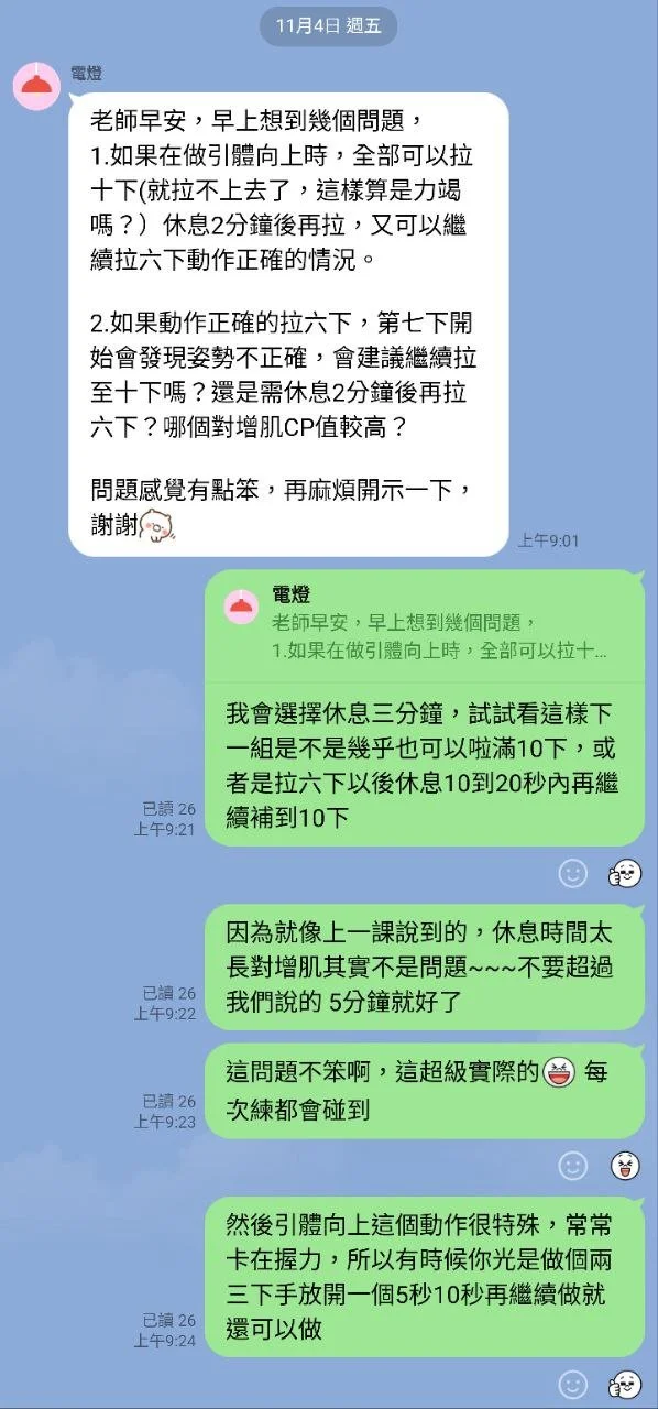 教練一對一幫你解決卡關大魔王:每天都跟上進度、教材都反覆做筆記做筆記了、已經吃得超乾淨、天天運動一小時了…還是卡關,怎麼辦!教練每週提供一對一諮詢時間,解決你所有的減脂疑難疑難雜症!