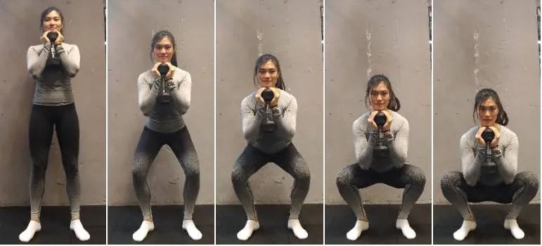 正面(分別為 1/4蹲,1/2蹲,水平蹲(就是大腿平行地面的意思),全蹲)